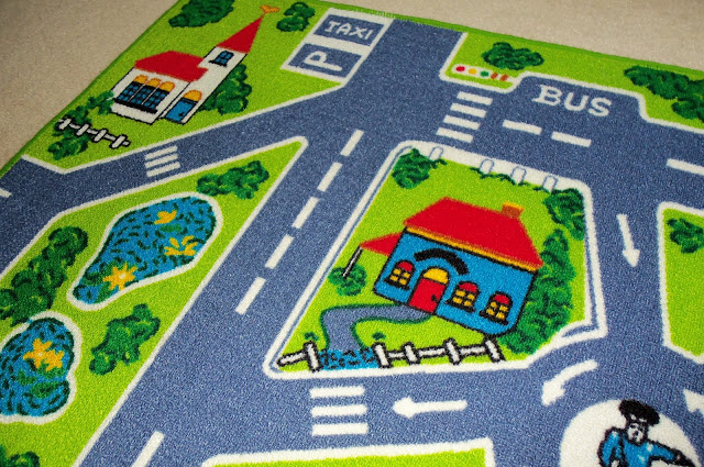 Inspiration #2: This car play rug that I bought here on Amazon a couple years ago.  Evan LOVES to drive his millions of cars on it!