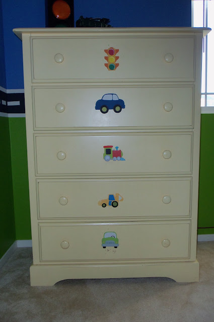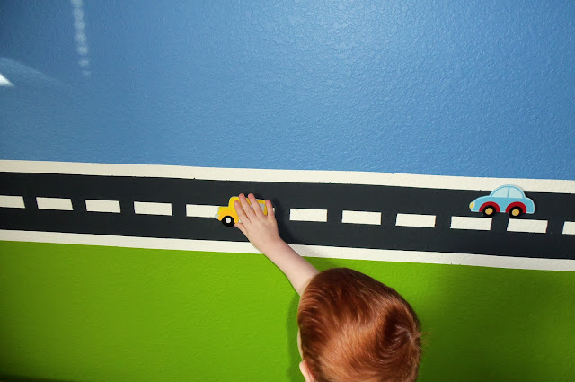 Adorable! You did SUCH a great job! Our son is only 8 months so it's probably a little early for this... but since his walls are already blue I'm pretty sure the transition to the bottom half with green and cars will have to happen :)